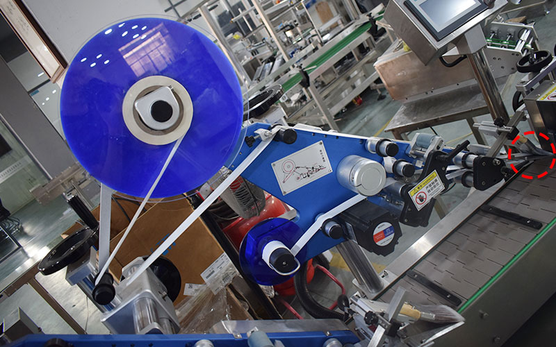机器后端贴标机;前端完成纸盒包装自动流通至后端贴标机自动贴标完成整个纸盒包装。