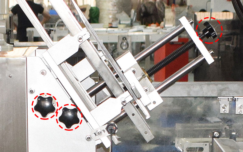 纸板仓调节机构;需人工手动去调节纸板仓纸盒需求。